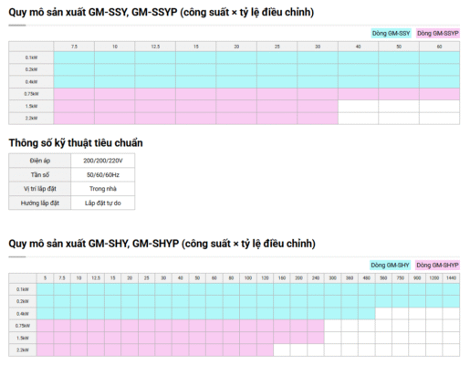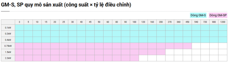 Quy mô sản xuất GM-SSY, GM-SSYP (công suất × tỷ lệ điều chỉnh)